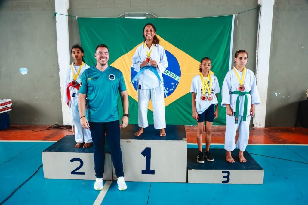Sua irmã, Jolie, de 13 anos, faixa verde e aluna da Escola Municipal INEFI, ficou com o 3º lugar em Kumitê, demonstrando técnica e dedicação em sua categoria.